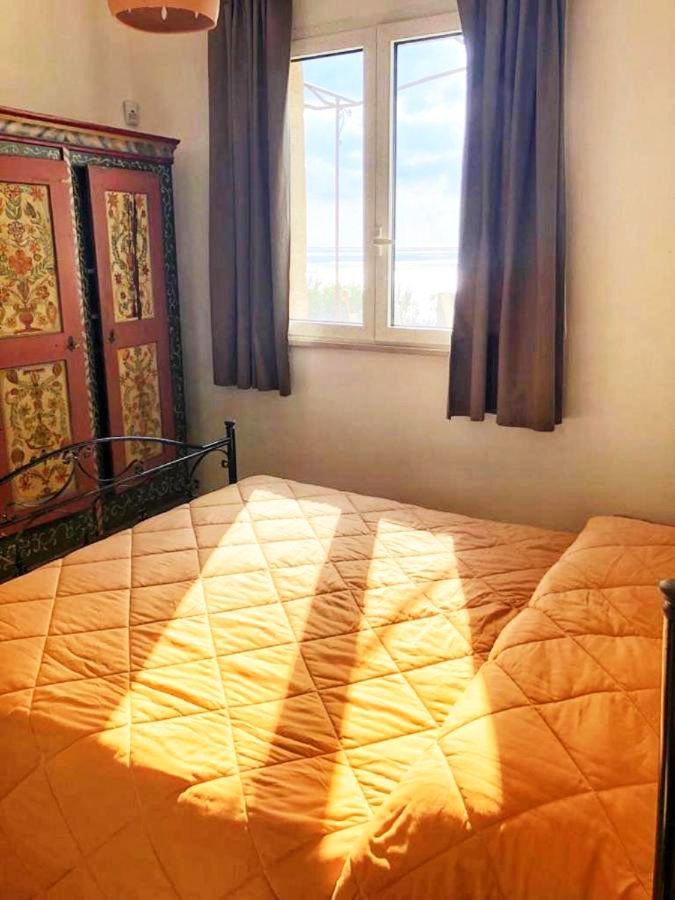 La casa con terrazza vista mare offre l'accesso a un patio attrezzato con sdraio e da un secondo tavolo da pranzo esterno, dispone inoltre di 3 camere da letto, un soggiorno, una TV, una cucina attrezzata con forno e microonde, e 2 bagni con doccia.